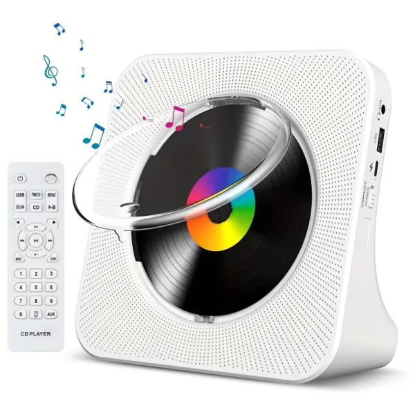 M-AMAZUP 올인원 CD/USB/FM 라디오 플레이어, 내장형 듀얼 스테레오 스피커, USB 전원, A-B 반복, 리모컨, USB 녹음/스트리밍, MP3/WMA, 인체공학적 다이얼 및 디스플레이가 있는 컴팩트 디자인 - 스마트폰/태블릿/노트북용 휴대용 CD 플레이어 (USB 전원, 전기 콘센트 불필요)